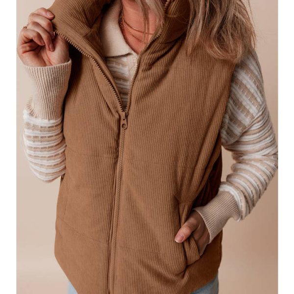 Corduroy Stand Neck Zipped Puffer Vest