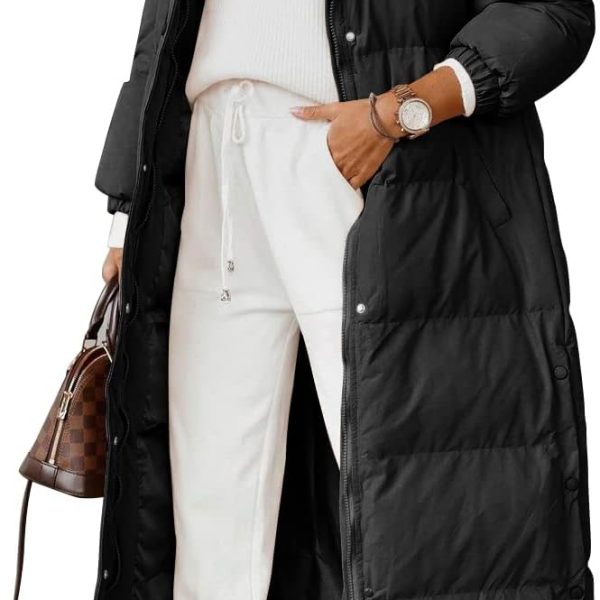 Women Long Quilted Coat Hooded Maxi Length Long Sleeve Puffer Jacket Padded Coat Winter Outerwear