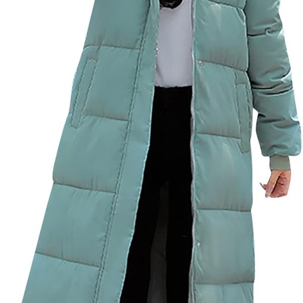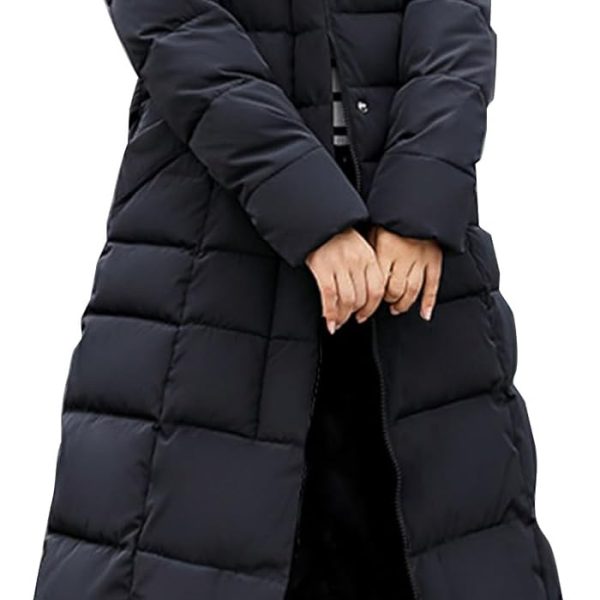 Women Hooded Long Quilted Coat Maxi Length Long Sleeve Puffer Jacket Warm Padded Coat Thick Winter Outerwear