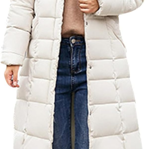 Women Long Quilted Coat Winter Hooded Long Sleeve Button Down Puffer Padded Jacket