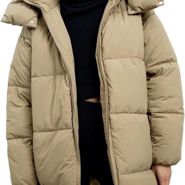 Women Quilted Puffer Coat Hoodie Winter Oversized Mid-Length Padded Down Jacket Warm Heavyweight Bubble Outerwear