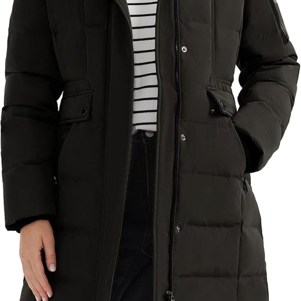 Women Winter Fleece Lined Down Jacket Windproof Fur Warm Fit Down Jacket - Long Ski Coat for Commuting