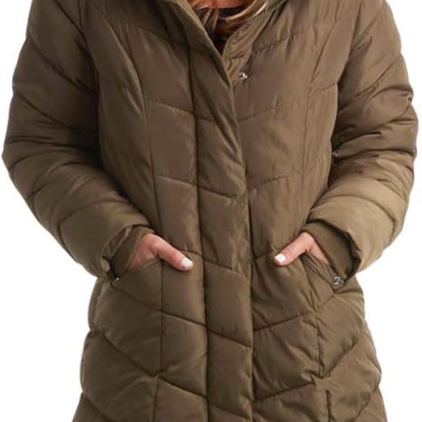 Women Hooded Winter Down Coat Quilted Mid Length Puffer Jacket