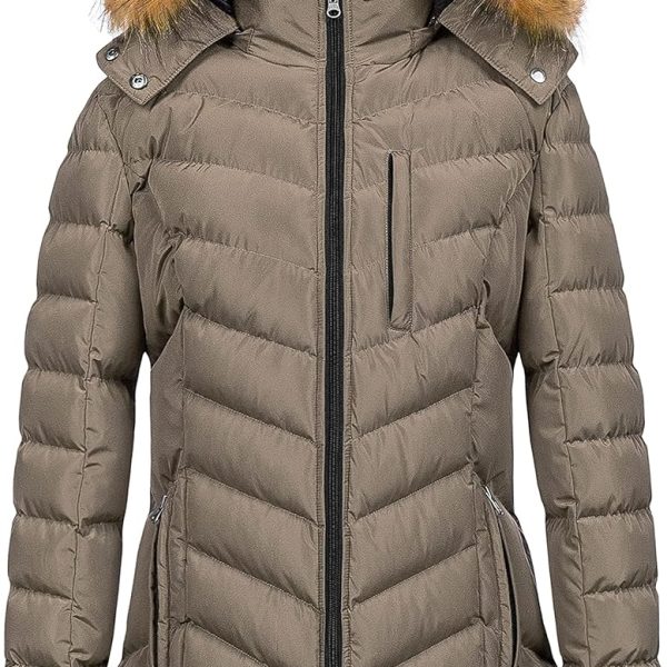 Women Insulated Quilted Puffer Parka Winter Coat with Hood (S-XL)