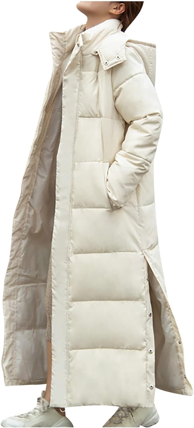 Winter Jackets for Women Long Parka Puffer Coat Hooded Thicken Quilted Ankle Length Maxi Long Coats Anorak Outwear